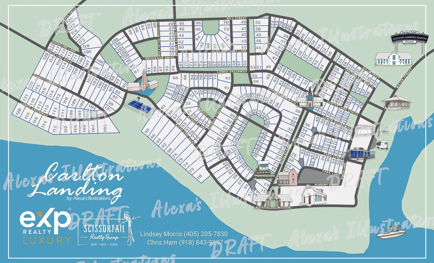 Carlton Landing! There’s a new map in town. Scissortail Realty Group and EXP Luxury Realty commissioned me to take my Carlton Landing Map and give it all the details for navigating this lakeside town.